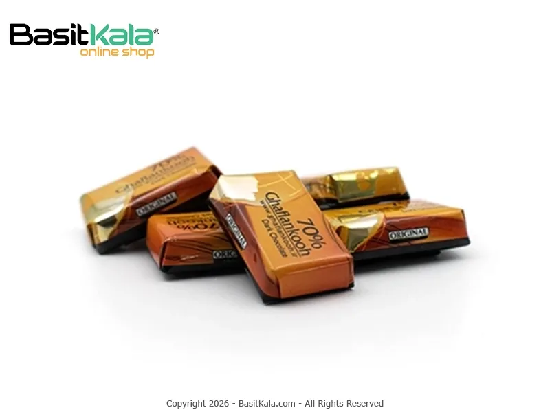 شکلات تلخ 70% قافلانکوه Ghaflankooh از محصولات با کیفیت و درجه یک این تولید کننده موفق است که با طراحی زیبایی عرضه شده است. شکلات های تلخ به طور معمول دارای مقدار کمتری شکر هستند که به سالم تر شدن این خوراکی پرطرفدار کمک می کند و در عوض از کاکائوی بیشتر در ترکیب خود استفاده می کنند. کاکائو دارای مقداری مزه تلخ است که استفاده زیاد از آن را با مشکلاتی مواجه می کند اما شکلات های تلخ 70% مقدار متناسبی از این ماده را در خود دارند که باعث می شود عطر و طعم کاکائو به خوبی درک شود. کاکائوی مورد استفاده در این محصول کیفیتی عالی دارد و با دقت فراوان تهیه شده است و از همین رو طعم عالی و متمایزی را نشان می دهد. این محصول با دستورالعمل ویژه قافلانکوه تهیه شده است و از برترین شکلات های تولیدشده در ایران است.