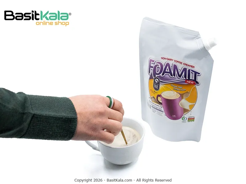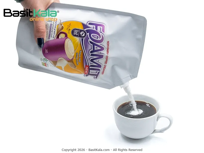 پودر خامهای کننده بسیط (فومیت) با فوم زیاد و بافت نرم، تولید شده با مواد درجه یک خارجی و فاقد شکر؛ محصولی غیرلبنی بر پایه گیاهی، برای بهبود و متعادل کردن طعم قهوه و مخملی کردن آن