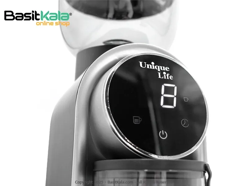 نمایشگر دیجیتال و کنترل لمسی دستگاه، امکان تنظیم دقیق زمان و مقدار آسیاب