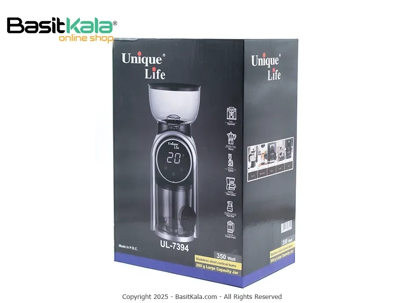 ظرفیت مخزن دانه قهوه: 250 گرم