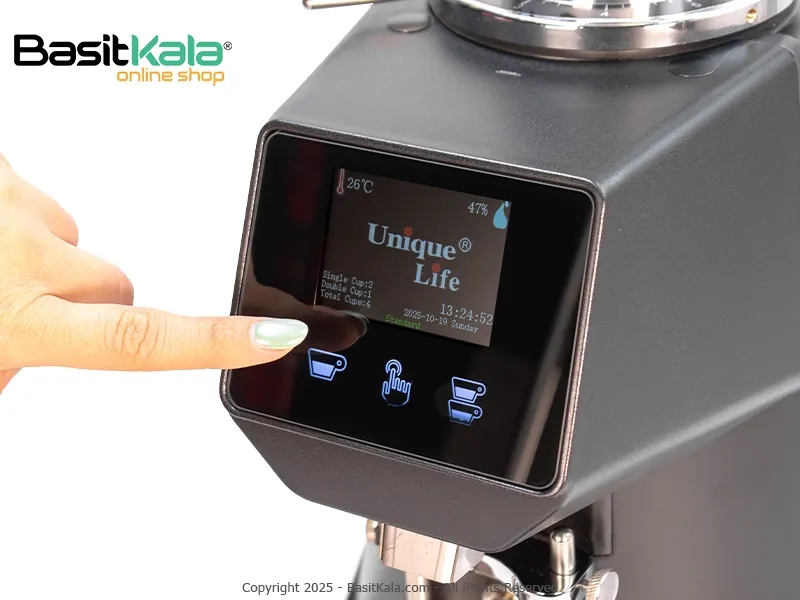 دارای دکمههای لمسی مجزا برای آسیاب تک و دو کاپ و کنترل سریع فرایند