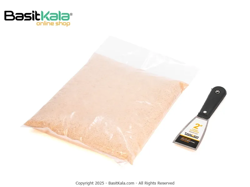 به همراه کاردک فلزی مقاوم برای جابه‌جایی و تسطیح شن در بسته‌بندی