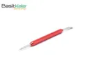 • دارای دو سر: سوزنی (برای خطوط ظریف) و قاشقی (برای پخش و اصلاح فوم)