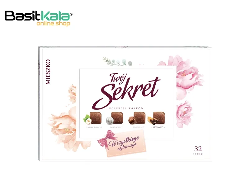 پرالین شکلات شیری کادویی با بسته بندی شیک مدل سکرت