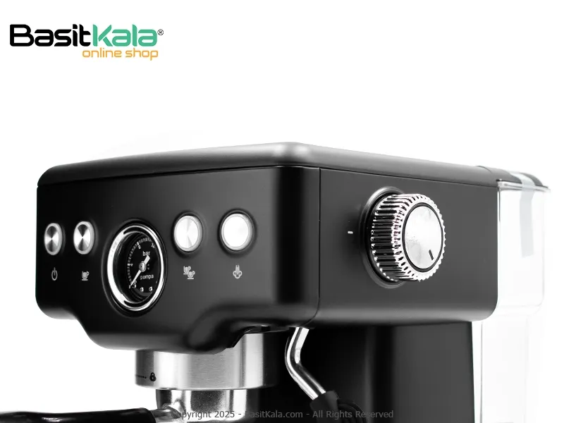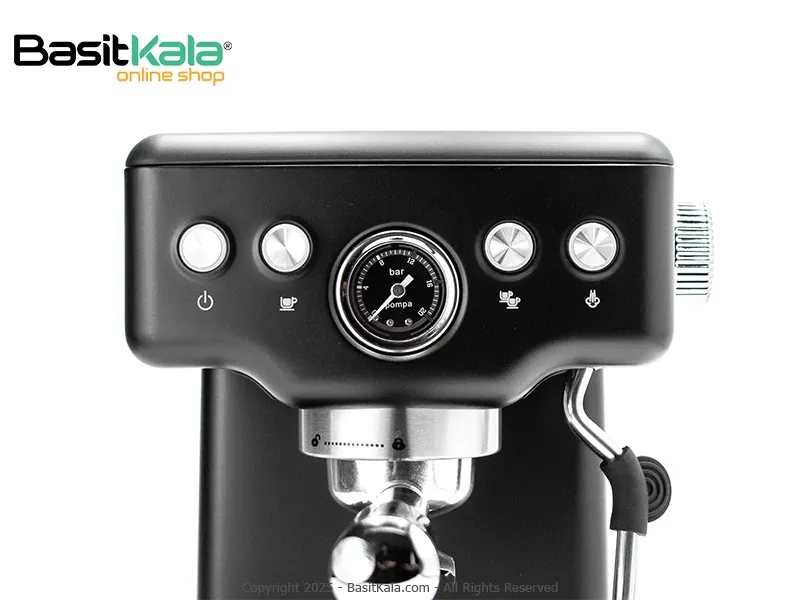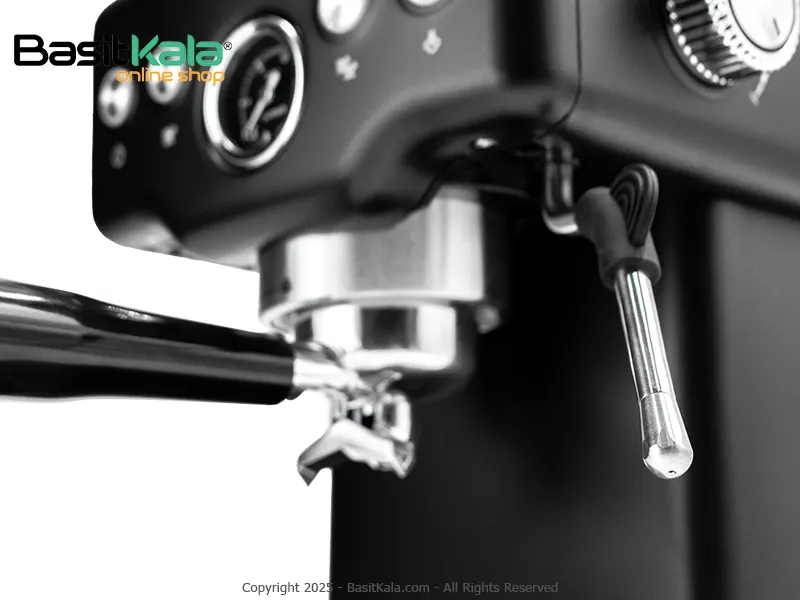 ساختار دستگاه: دارای پنل دکمهای ساده، پیچ کنترلی بخار برای کنترل بهتر فوم شیر و صفحه گرمکن فنجان استیل