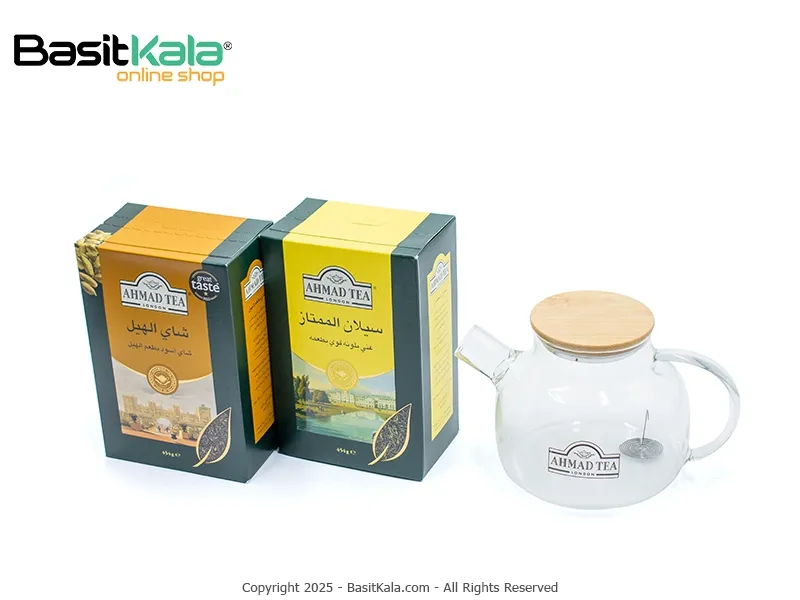 پک چای احمد؛ حاوی دو عدد چای بسته 454 گرمی اصیل سیلان با قوری شیشهای برای تجربهای کامل از طعم کلاسیک و واقعی چای