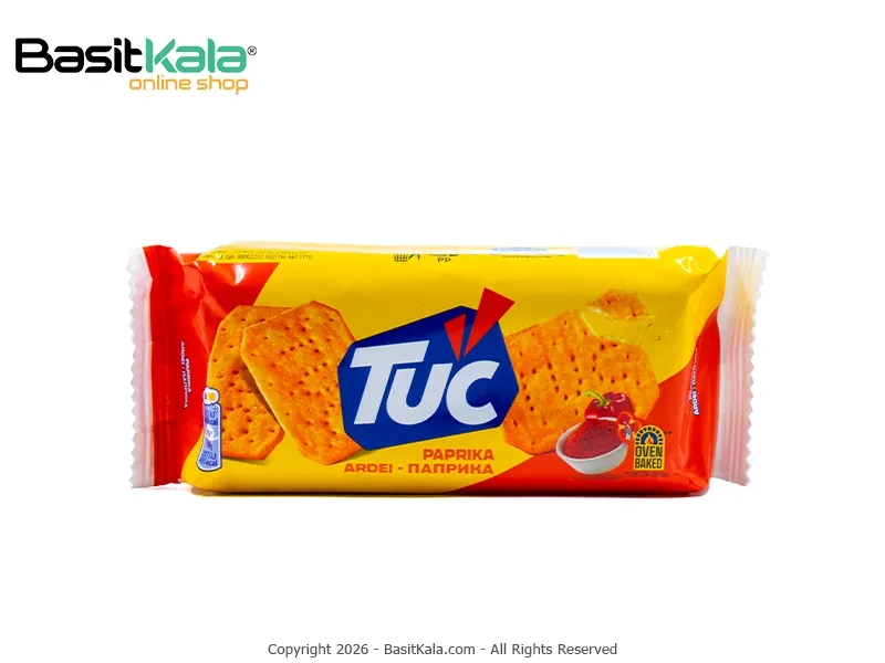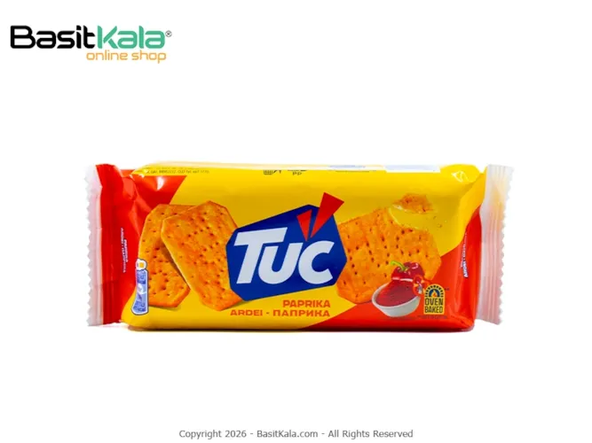 بیسکوئیت کراکر نمکی با طعم پاپریکا؛ یک اسنک ترد؛ لذیذ و ادویهای و پخته شده در فر برای ایجاد طعم بینظیر؛ مناسب میان وعدهی لذیذ و خوشمزه