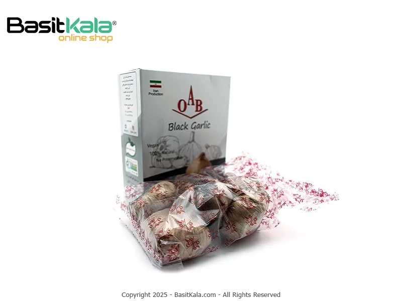 سیر سیاه فرآوری شده 200 گرمی اُ.آ.ب OAB محصولی متفاوت و بسیار جالب و خوش طعم و مفید است که می تواند طعمی تازه و دلپذیر را به سفره شما اضافه کند. سیر سیاه با تخمیر سیر معمولی بدست می آید که در شرایط دمایی و رطوبتی کنترل شده انجام می شود. این فرآیند طبیعی بوده و بدون استفاده از هیچ گونه ماده افزودنی انجام می شود. نتیجه این فرآیند سیر سیاه است که ویژگی های خاص و متفاوتی دارد. سیر سیاه آنتی اکسیدان های بسیار بیشتری نسبت به سیر معمولی دارد و در فرآوری آن انواع ترکیبات مفید دیگر به آن اضافه می شود. می توان گفت که این نوع سیر، خوراکی بسیار ارزشمند از نظر خواص مفید برای سلامتی است. طعم سیر سیاه بسیار دلپذیر و ترش شیرین بوده و عطر و بوی و غنی و چندلایه ای دارد که شباهت هایی نیز با سیر ترشی در آن دیده می شود اما با آن متفاوت است. سیر سیاه اما بوی خاص و نا مطبوع سیر را ندارد و به راحتی می توان به طور روزمره از آن استفاده کرد. بافت سیر سیاه نرم و شکلاتی است و می توان آن را همراه نان و غذاهای مختلف مصرف نمود. این ماده غذایی را می توان در تهیه انواع غذاها از جمله سوپ ها، سالادها و... به کار گرفت. سیر سیاه منبع ارزشمند آنتی اکسیدان، فلاونوئید، انواع عناصر و ویتامین ها است و عطر و طعم دلپذیری نیز دارد و می تواند هم رنگ تازه ای به طعم های آشنا بدهد و هم فواید خوراک های روزمره را بسیار بالاتر ببرد.