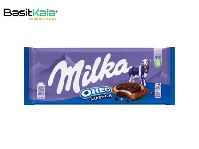 شکلات شیری تختهای تهیهشده از شیر درجه 1 با ترکیب بیسکویت اورئو ساندویچی