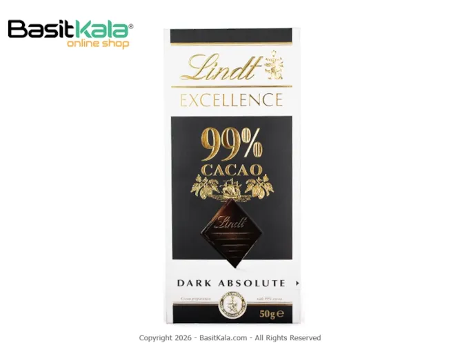 تابلت شکلات تلخ ابسلوت دارک سری اکسلنس 50 گرمی لینت با 99 درصد کاکائو، تجربه طعم خالص و عمیق کاکائو و فاقد افزودنیهای لبنی