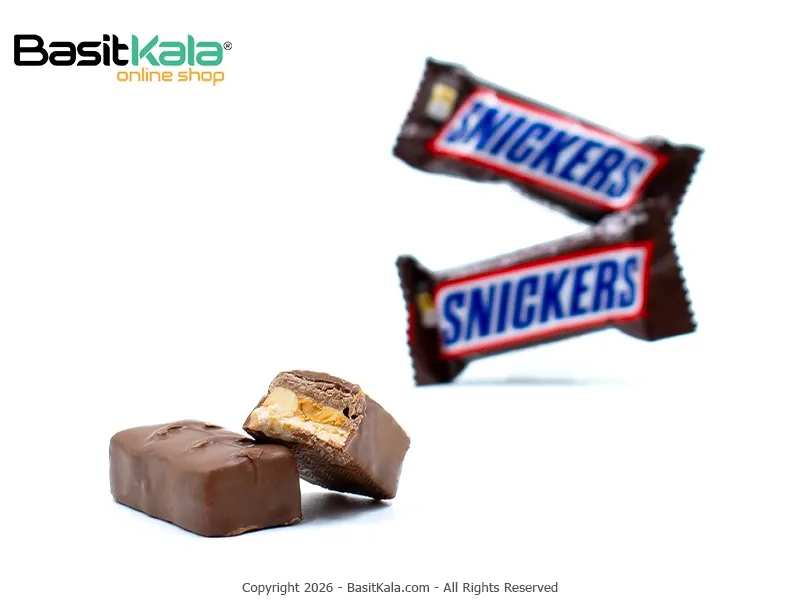 مینی شکلات اسنیکرز؛ یک شکلات کوچک اما انرژی بخش با ترکیب بادام زمینی تازه و کارامل کشدار، پوشیدهشده با لایهای لطیف از شکلات شیری