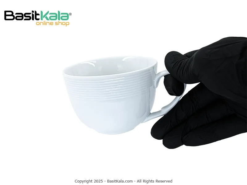 فنجان چینی سفید با طراحی ساده و مینیمال